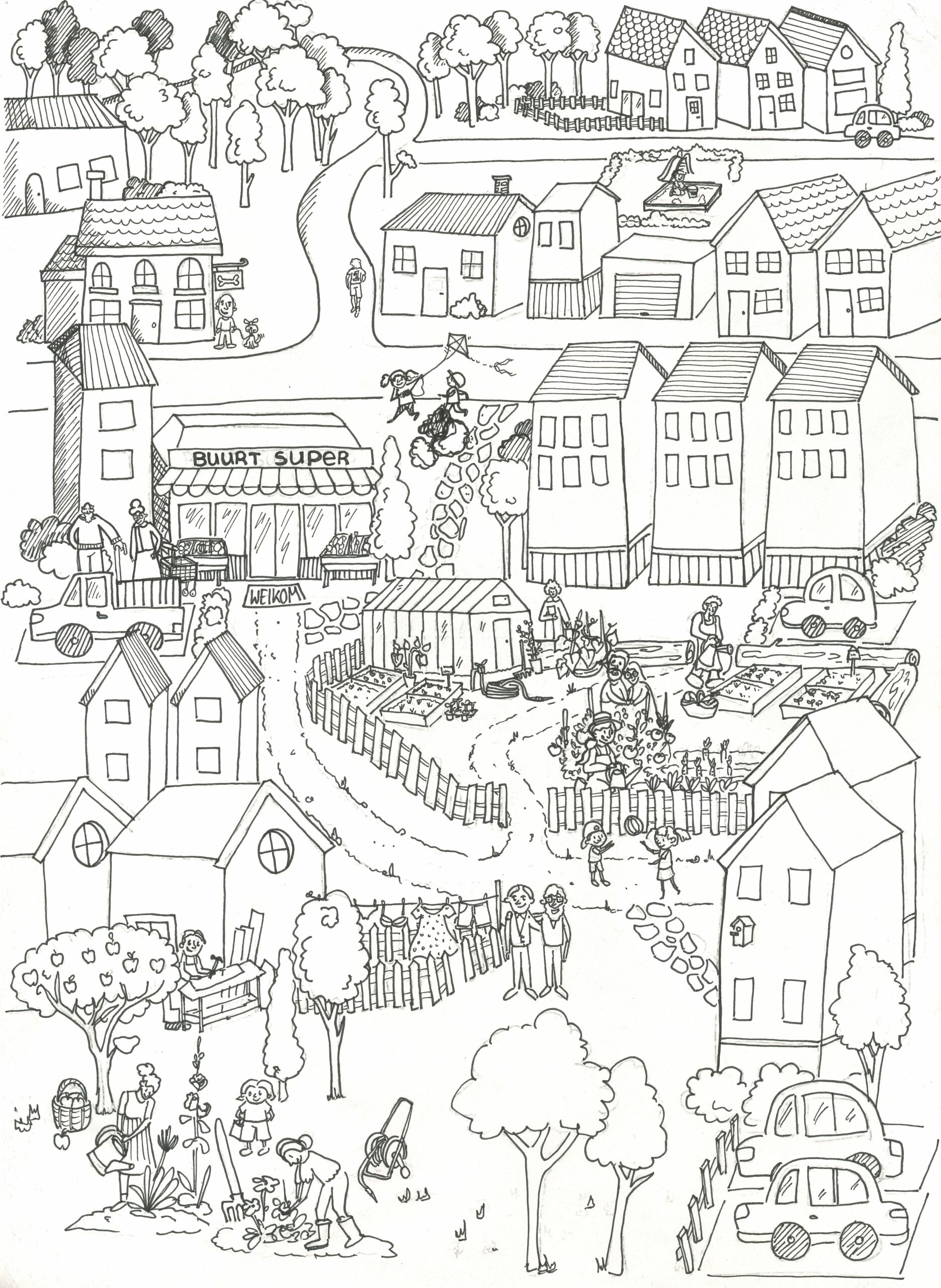 In de wijken worden (groente)tuinen aangelegd en wonen ouderen en jongeren naast elkaar. Terwijl de jongeren zich focussen op hun carrière, werken de ouderen een aantal uren per dag in de tuin, of ze passen op de kinderen. Ze participeren in het onderwijs als ‘leesgrootmoeders of -vaders’. En ze leggen een kaartje of drinken een kop koffie in het schoolgebouw, waar in de ochtend les wordt gegeven en op zondag kerkdiensten plaatsvinden. Op enkele middagen is hier ook de buurtsuper open, die wordt bemenst door inwoners. Buren bieden taxidiensten aan om mensen naar de huisarts of winkels in de verderop gelegen stad te brengen…